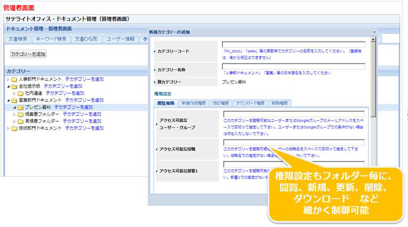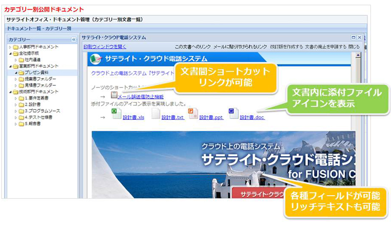 - (3)多種多様な高度なドキュメント管理機能(ワークフロー内蔵)が可能。